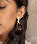 The Alif earrings are gold plated, intertwined loop earrings.