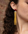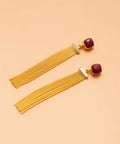 The Arzoo earrings are chained drop earrings with pink ruby stone. These flowy chain drops are approximately 2" long after the stone.