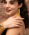 Style Tip: These gold plated earrings are the best dramatic statement looks with your hair pulled back. Pair it with the Gulya ring for added drama and flair!