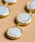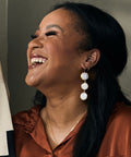 The Beyaz are three tiered, round and flat pearl drop earrings.