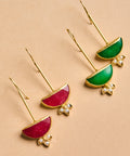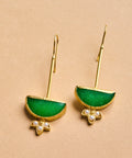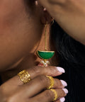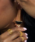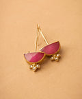 The Dia earrings are drop hook earrings finished with a trio of tiny pearls. This is available in Black Onyx, Jade and Pink Ruby stone. These stones are hand cut with precision and time consuming craftsmanship, therefore no two pieces will be identical.