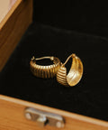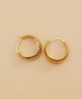 The Halka hoops are ribbed gold classic hoops light enough to wear everyday.