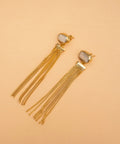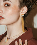 The Rezan earrings are organic rectangular shaped pearls with a chain drop. The richness in these drops without the heaviness is incredibly unique.