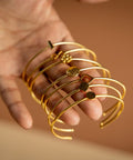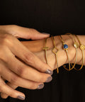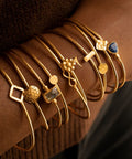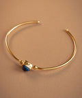 The Ceyda bangle looks elegant on its own or can be stacked with your bracelet collection for a contemporary look. A sleek gold plated cuff, it is embellished with a triangular shaped lapis stone.